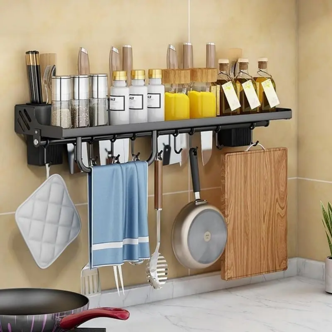 Offrez à votre cuisine un espace de rangement pratique, robuste et design. Cette étagère murale multifonction est la solution idéale pour garder vos bouteilles, épices, ustensiles, torchons et planches à découper parfaitement organisés — tout en libérant votre plan de travail.